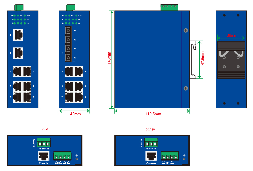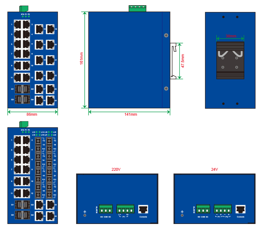 | 百兆光口 | 最多8個百兆光,SC/ST/FC可選 |