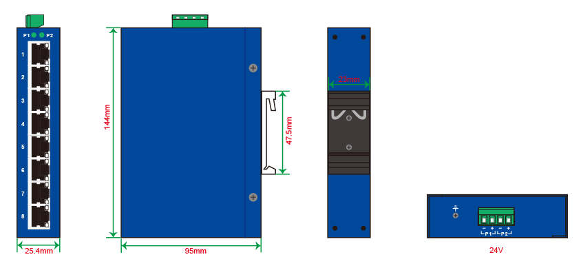 MX5E- 5T是一款緊湊型百兆非網(wǎng)管工業(yè)以太網(wǎng)交換機(jī),支持5個百兆電口。支持IEEE802.3/802.3u/802.3x,10/100M,全/半雙工,MDI/MDI-X自適應(yīng)RJ45端口。導(dǎo)軌安裝,24V電壓輸入,并提供過載和反接保護(hù)。可選寬溫型號(-40 ~ +75℃),強(qiáng)抗電磁干擾能力,完全滿足苛刻的工業(yè)應(yīng)用環(huán)境,為工業(yè)現(xiàn)場提供經(jīng)濟(jì)可靠的網(wǎng)絡(luò)接入。