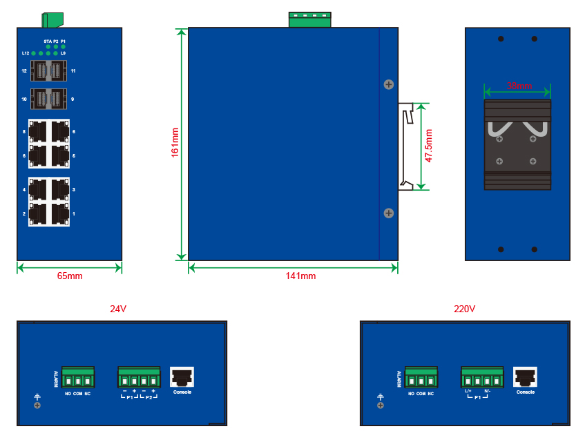 | 安裝方式 | 默認(rèn)導(dǎo)軌安裝,可選壁掛安裝 |
